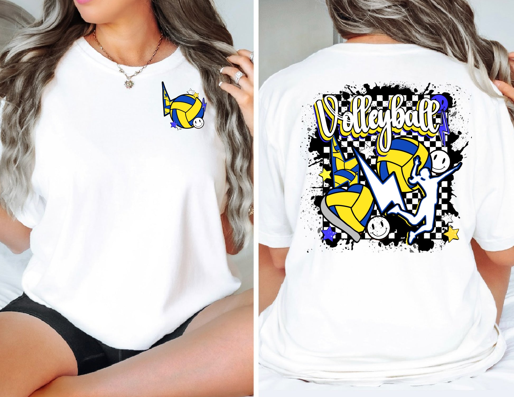 Volleyball retro checkered tee